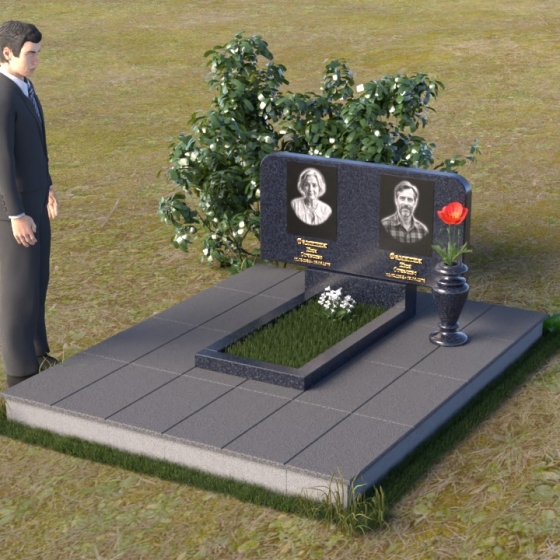 Оформление: Для данной формы стелы идеально подойдет гравировка портретов в овальной или прямоугольной форме. Расположение портретов может быть как симметричным, так и асимметричным, в зависимости от ваших предпочтений. Имена и даты жизни рекомендуется располагать под портретами, используя элегантный шрифт с засечками. Также можно добавить эпитафию, отражающую личность усопшего и вашу любовь к нему.