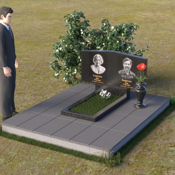 Форма этого памятника символизирует покой и защиту. Прямые линии и четкие грани говорят о стабильности и надежности, а скошенные углы смягчают строгость и добавляют нотку современности. Общая композиция создает ощущение умиротворения и вечности, напоминая о том, что память о близких будет жить в наших сердцах всегда.