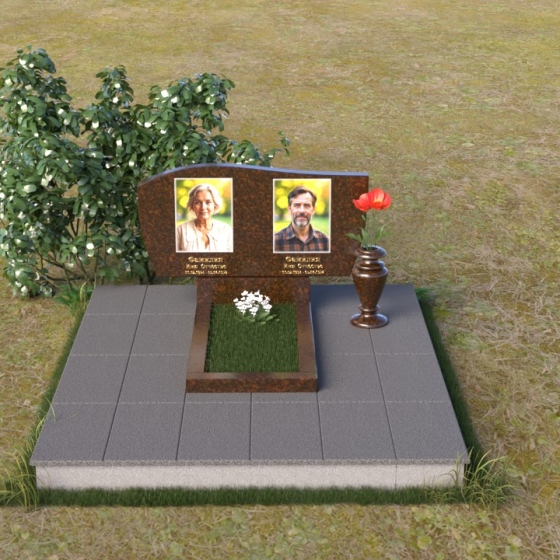 Оформление: Для этой формы стелы рекомендуется выбирать портреты с четкими контурами, чтобы гравировка максимально точно передала образ усопшего. Имена и даты рождения можно разместить под портретами, используя элегантный шрифт с золотым напылением, что придаст ритуальному изделию дополнительную торжественность.
