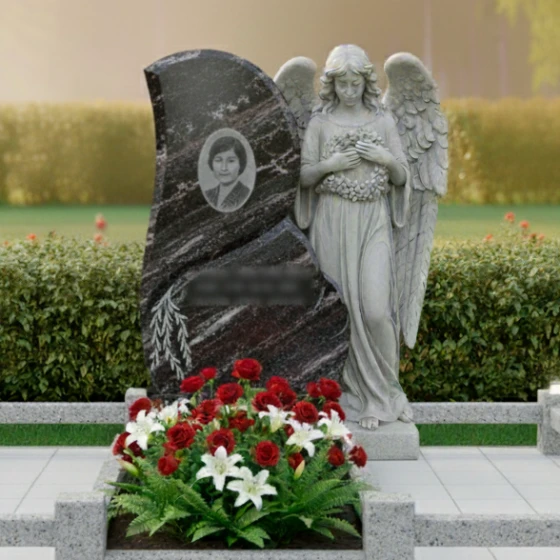 Этот мемориальный комплекс являет собой воплощение скорби и светлой надежды, где центральное место занимает скульптура ангела, словно оберегающего покой ушедшего. Плавные линии стелы, дополненные изящной гравировкой, контрастируют с монументальностью основания, создавая гармоничный и запоминающийся образ. Благодаря возможности выбора из восьми вариантов камня, включая семь видов гранита и благородный мрамор Тассос, памятник может обрести индивидуальный облик, соответствующий характеру и памяти дорогого человека.