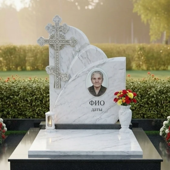 Оформление: Уникальная форма вертикальной плиты идеально подходит для гравировки портрета, выполненного методом лазерной гравировки или ручной работы, что позволит передать все черты лица с максимальной точностью. Размещение портрета по центру, под легкими волнами верхнего края, создает ощущение его защищенности и значимости. ФИО и даты жизни будут гармонично смотреться под портретом, выполненные элегантным шрифтом, который подчеркнет благородство камня. Возможно добавление эпитафии или символических изображений, которые будут ненавязчиво дополнять общую композицию, сохраняя ее лаконичность и достоинство.