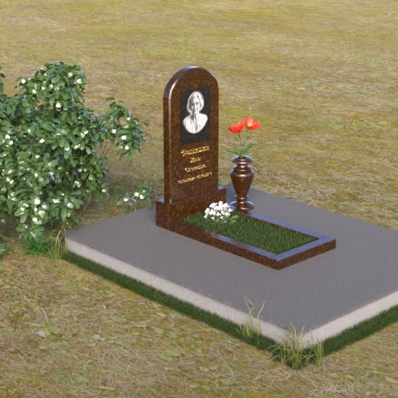 Форма арки, выбранная для стелы, символизирует переход из земной жизни в вечность. Она словно врата, открывающиеся в иной мир, полный покоя и света. Закругленные грани стелы говорят о мягкости и доброте ушедшего человека, о его способности сострадать и любить. Зеркальная полировка подставки отражает надежду на светлое будущее и веру в бессмертие души. В целом, мемориальная композиция излучает чувство защищенности и умиротворения, создавая атмосферу тихой скорби и светлой памяти.