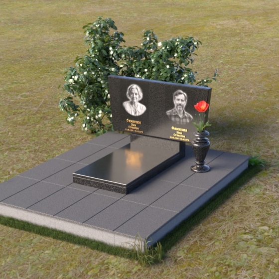 Асимметричная форма стелы не случайна. Она символизирует жизненный путь, который не всегда бывает прямым и предсказуемым. Скошенный угол, напоминающий крыло, несет в себе идею защиты и утешения, а также веру в загробную жизнь. Зеркальная полировка, в свою очередь, отражает свет и символизирует чистоту души и вечную память. Горизонтальная плита, расположенная под стелой, олицетворяет землю, на которой покоится прах усопших, и одновременно служит связующим звеном между земным и небесным мирами. Общий вид памятника создает ощущение покоя и умиротворения, приглашая к тихой молитве и воспоминаниям.