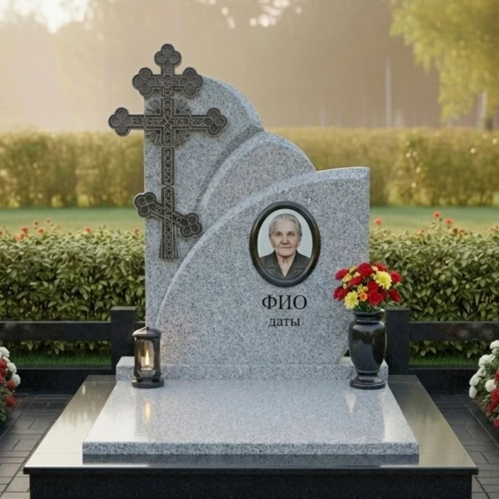 Оформление: Уникальная форма вертикальной плиты идеально подходит для гравировки портрета, выполненного методом лазерной гравировки или ручной работы, что позволит передать все черты лица с максимальной точностью. Размещение портрета по центру, под легкими волнами верхнего края, создает ощущение его защищенности и значимости. ФИО и даты жизни будут гармонично смотреться под портретом, выполненные элегантным шрифтом, который подчеркнет благородство камня. Возможно добавление эпитафии или символических изображений, которые будут ненавязчиво дополнять общую композицию, сохраняя ее лаконичность и достоинство.