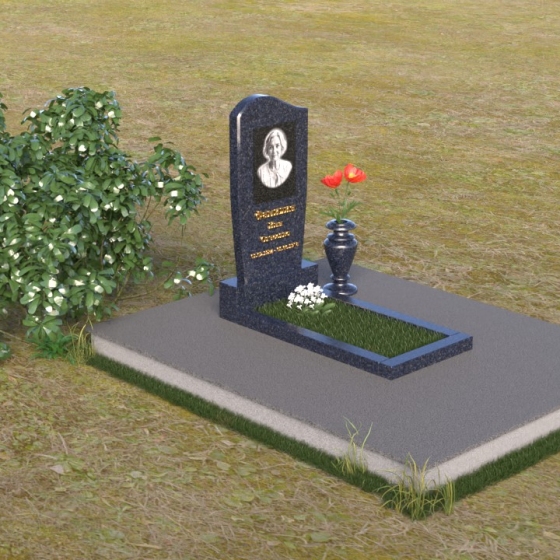Форма стелы, тяготеющая к классической прямоугольной, предоставляет широкие возможности для персонализации. Портрет усопшего, расположенный в верхней части, будет выгодно подчеркнут лаконичной формой камня. Золотистое начертание имени и дат жизни, выполненное с особым вниманием к деталям, отчетливо выделяется на фоне полированного гранита, создавая четкий и легко читаемый текст. Дополнительно можно разместить эпитафию или памятные слова, которые отразят личность и жизненный путь ушедшего человека. Маленькая гранитная ваза, выполненная в едином стиле с мемориальной композицией, станет достойным обрамлением для живых цветов, привносящих нотку жизни и надежды.